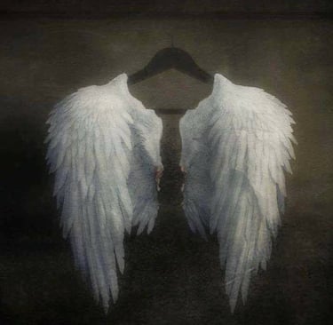 El viento fresco se fue haciendo denso y apareció frente a mi un Ángel, me llamó la atención sus bellas alas blancas, recordé que yo solo tenía dos cayos en mi espalda y le pregunte: ¿donde están las mías? ¿quien corto mis alas?